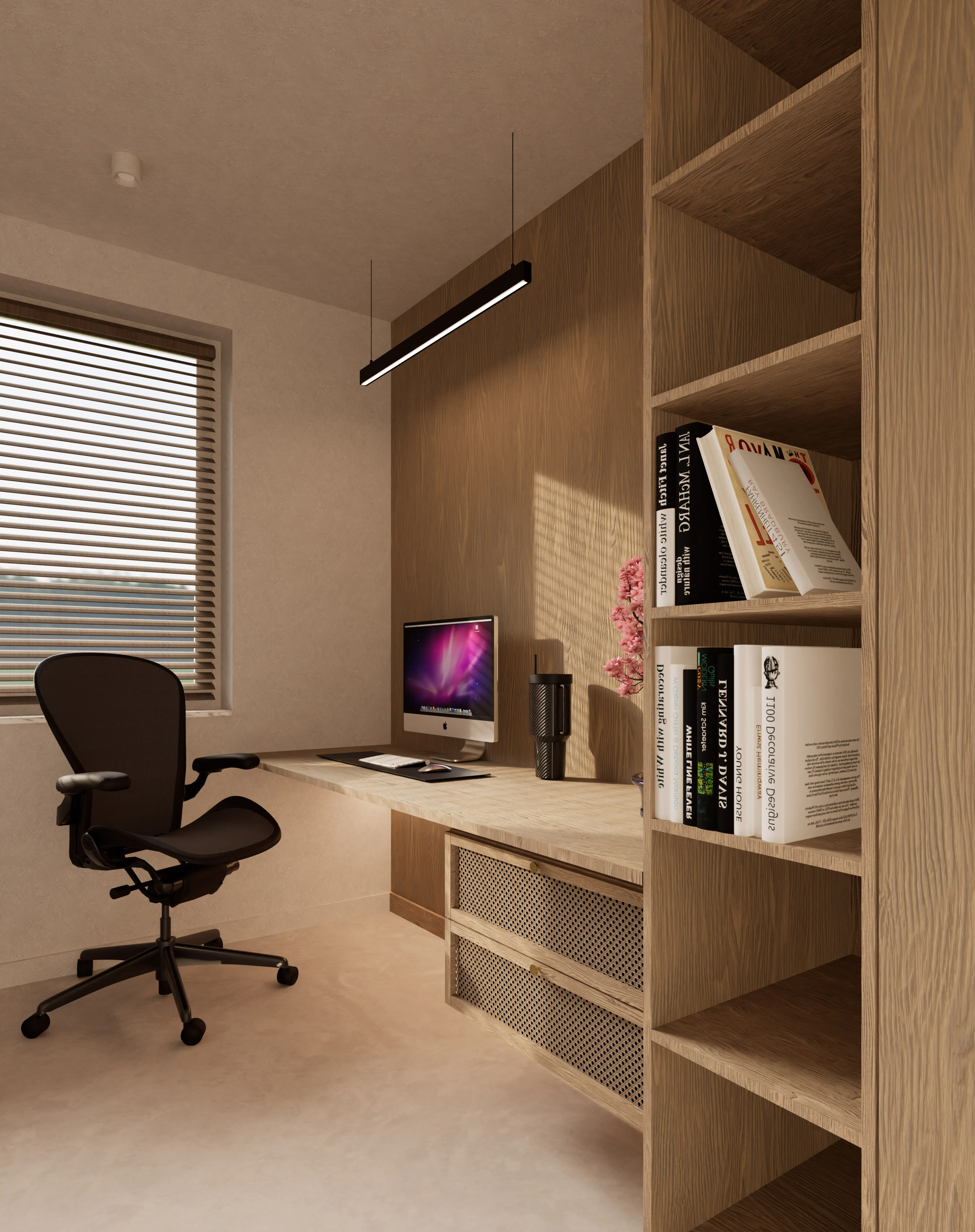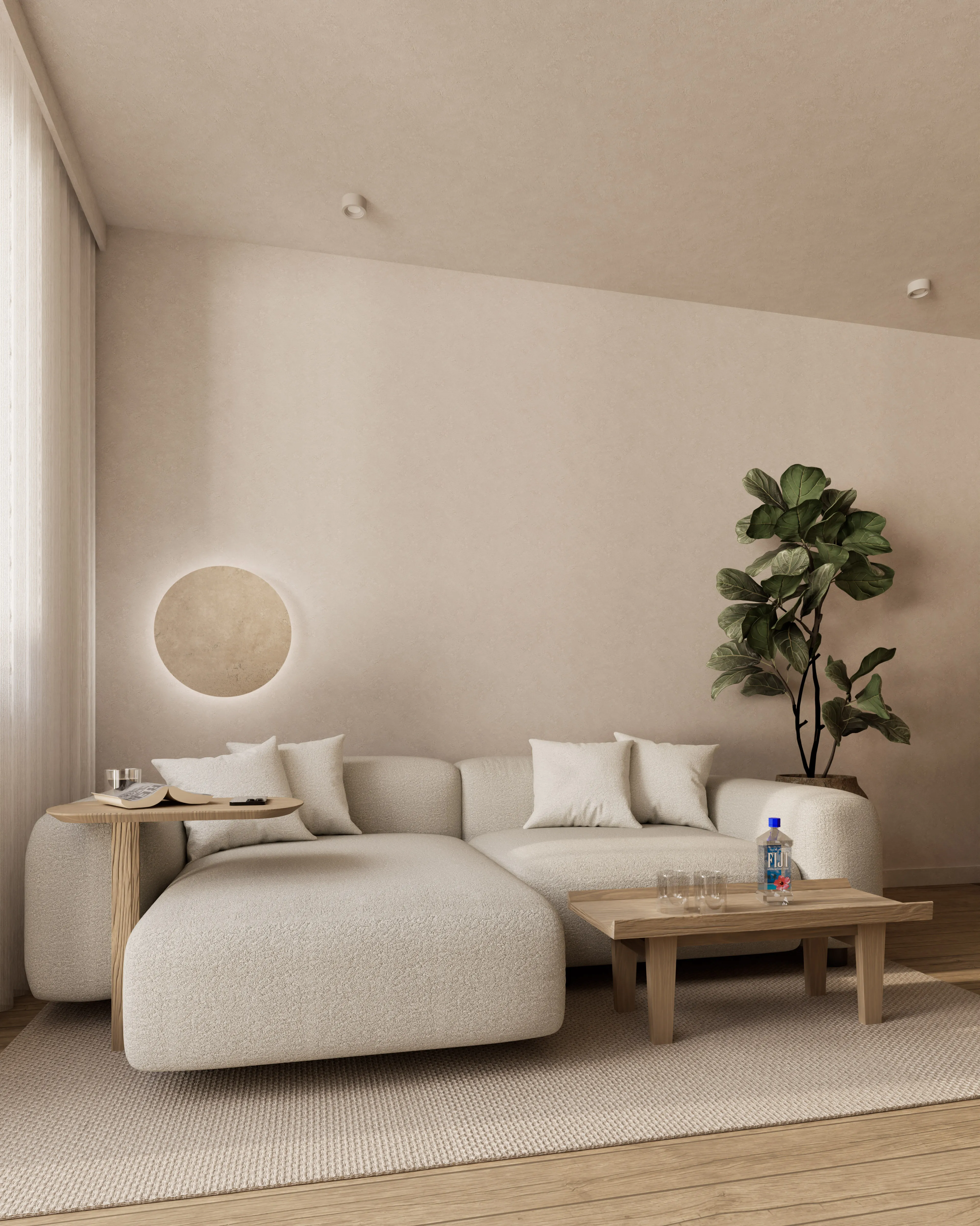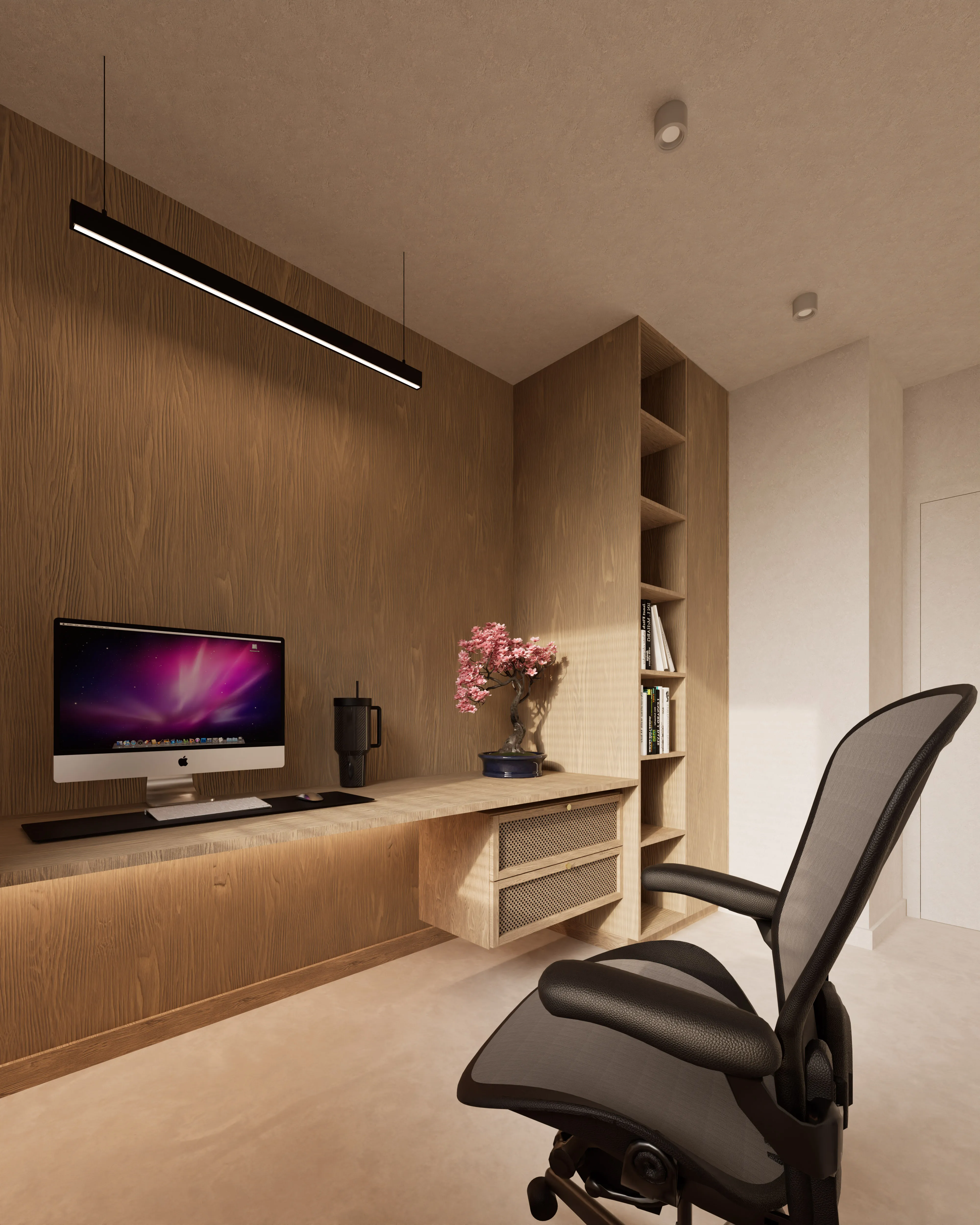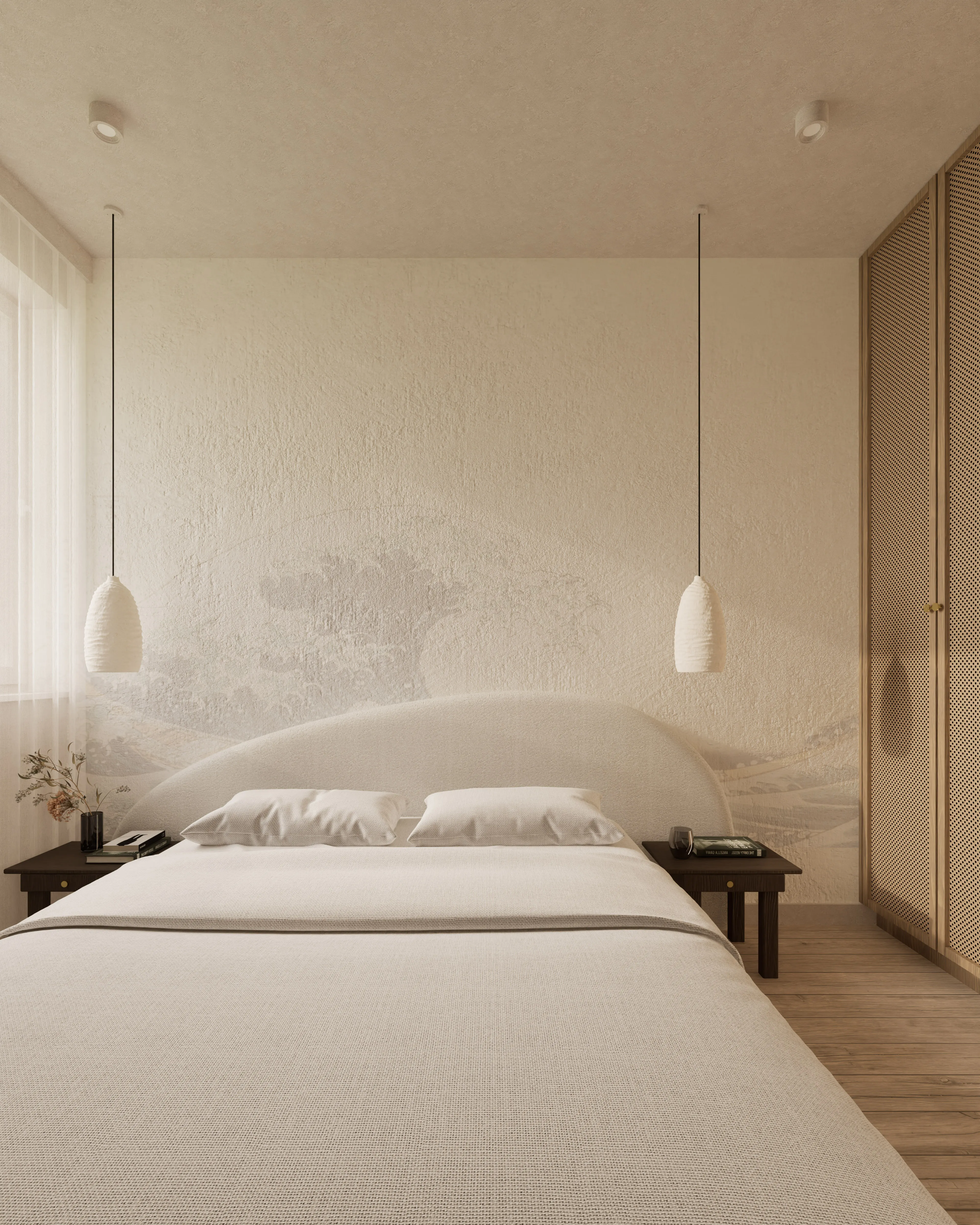 Estetyka projektu opiera się na stworzeniu spokojnej, relaksującej atmosfery. Stonowane kolory i naturalne materiały budują wnętrze sprzyjające wyciszeniu. Kluczowe znaczenie ma zachowanie balansu między elementami wyposażenia a przestrzenią pustą, która działa jak naturalne remedium na przebodźcowanie i stres sensoryczny.